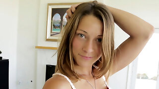 Super-sexy white dress is thrown down and slutty Jessie goes solo for some joy