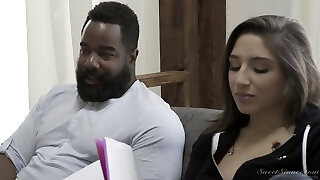 Chubby Bosomy Blonde Babe Angie Faith Impales Her Puss On Sly Diggler's Big Black Cock After Some Oral Job & Tit-fuck