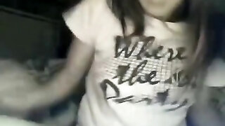 Small titted brunette teen fingering on the bed