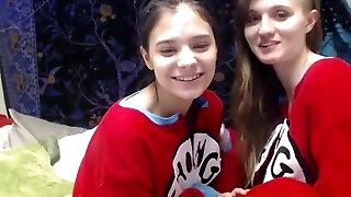 Chesty Teen Cheerleaders Double Showoff